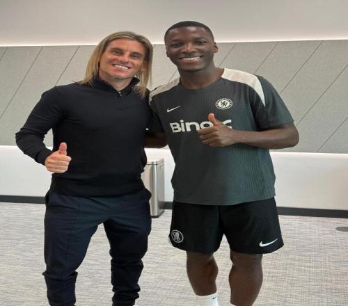 厄瓜多尔主帅贝卡切切现场观战切尔西,并与凯塞多合影